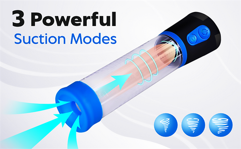 - Aanpasbare zuigkracht - Onze penispomp heeft drie niveaus van zuigintensiteit, zodat u geleidelijk kunt trainen en uw penisgrootte kunt verbeteren. Perfecte penisvergroting voor beginners of ervaren gebruikers