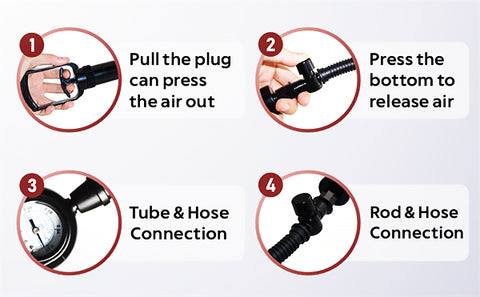 - Ergonomische handgreep en ontluchtingsventiel: De ergonomische handgreep van de penisvergrotingspomp past comfortabel in uw hand, waardoor u de luchtdruk eenvoudig kunt aanpassen. Het ontluchtingsventiel met één knop zorgt voor uw veiligheid en comfort