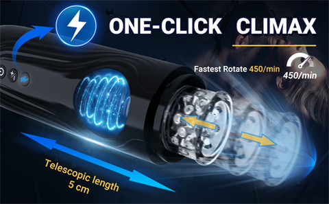 - 【One-click Orgasm - Upgrade Stimulation】The male sex toy has a one-button orgasm function, which can instantly reach orgasm from zero, all functions reach the maximum, the maximum speed can reach 450 rpm, and the maximum telescopic length can reach 5cm.The advanced functional design of the male sex toy will take your pleasure to the next level, train your penis and push your limits.