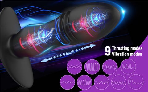 [ 2 IN 1 THRUSTING & VIBRATING ANAL VIBRATOR ] FIDECH thrusting butt plug have 9 different thrusting & vibrating modes that can be used simultaneously or separately. The longest Stretch of 0.6 Inch and Max 480 r/Min to make sure that each thrusting can hit your prostate area or g spot area. Bring you the most mind-blowing orgasm.