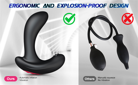 - Adjustable Inflation: This Anal Vibrator allows you to quickly inflate by slightly pressing the inflation button, and releasing your hand to stop inflation, exploring the extreme anal sex excitement. It is designed with a safe limited inflation size. The maximum inflatable diameter is 2.76"/7cm. So that you don’t need to worry about over-inflating.