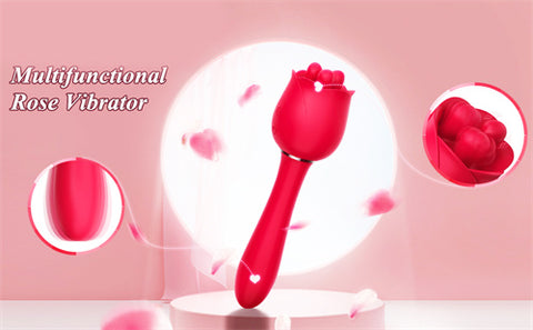 - Double Stimulation for Women - The rose clitoral vibrator has the function of finger kneading and vibration, 3 massage heads kneading to stimulate the clitoral nipples, combined with the strong vibration of the dildo to stimulate the clitoral g-spot.