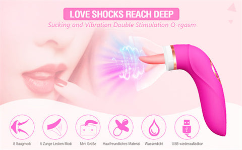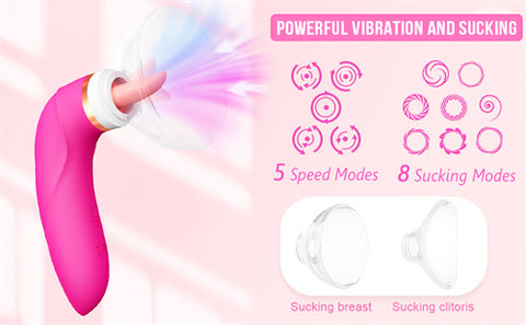 - Double Stimulation -- Adult Sex Toys has 8 different sucking and 5 licking modes, the sucking toy for woman tongue encircling your clit and targeting it for intense stimulation, the tongue vibrator and sucking with gentle to wild movements and a palpable sense of touch is a wonderful organ that can provide orgasms you never imagined.