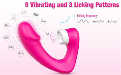 - 9 Vibration Modes & 3 Licking Modes - The two massagers are controlled by different buttons and can vibrate together or individually. The g spot massager has 9 powerful vibration modes, the tougue has 3 licking intensities.