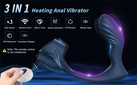 Anal Toy Prostate Massager Vibrator with Penis Ring, 7 Vibration Modes and Heating, Silicone Butt Plug Remote Control,Waterproof Anal Plug Sex Toys for Men & Women